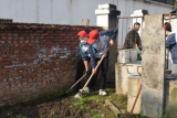 到达干休所后,在干休所工作人员的带领下,志愿者们各自拿着劳动工具去帮爷爷奶奶打扫屋内卫生、擦窗户、拔除杂草和铲土翻土。
