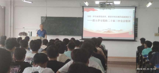 汪傧书记给电子A2411、12班授课,邓长寿院长给电子A2431、32班授课,胡日新副院长给电子A2463班授课,罗东云副院长给电子A2461、62班授课。课程题目为“为进一步全面深化改革、推进中国式现代化挺肩担当——深入学习党的二十届三中全会精神”,院领导们以饱满的热情和深厚的理论功底,将党的二十届三中全会精神深入浅出地融入到了这堂特殊的思政课中,为新生们开启了一段意义非凡的学习之旅。