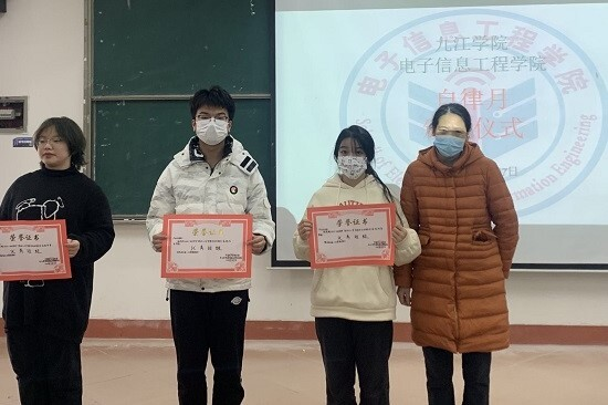 本次自律月活动中A2213、A2232、A2262三个班级获得优秀班级称号,陈富伟等55名同学获得先进个人称号。辅导员陈美玲老师为优秀班级颁发奖状,学生会主席团成员、学创部负责人戴会宾为获奖的55名同学颁发荣誉证书。优秀班级代表林睿同学分享了班级一个月以来进行的各项活动及取得的成果,总结了班级建设的优秀经验,现场其他班级班委都收获颇多。获奖学生代表陈富伟从学习、生活等方面展开交流,并表示一定会继续努力,坚持做一个自律的人,不辜负学院、家长的期望。活动最后,陈美玲老师进行了总结发言,对同学们在自律月活动中的表现给予肯定,鼓励同学们养成良好习惯,让自律成为生活常态,同时也对班委提出要求,希望班委要有责任意识,自觉做好表率作用。