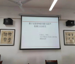曾博士从传统皮肤肿瘤检测方法谈起,先介绍了基于激光超声检测皮肤肿瘤方法的基本原理,对激光超声皮肤肿瘤模型做了相关理论论述,在传统皮肤肿瘤检测方法的基础上,发现了激光超声检测皮肤肿瘤的优势。曾博士还针对皮肤肿瘤激光超声检测方法存在的问题等研究内容做了详细交流。针对皮肤肿瘤的位置、大小定量检测难点,提出基于多种优化后的支持向量机方法,引入智能算法到人体皮肤肿瘤检测的研究。