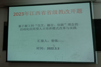 3月3日下午,leyu乐鱼官网2023年江西省省级教改立项课题开题报告会在竞知楼908教室举行。学院胡日新副院长,罗东云,蔡苗苗等老师、项目负责人曾伟老师和项目负责人刘泽良老师进行了开题汇报。