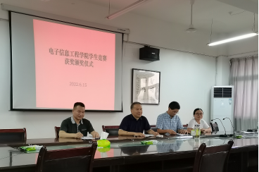 6月15日晚19:00,leyu乐鱼官网在竞知楼904会议室举行2021-2022学年电子设计竞赛获奖(省级以上)学生颁奖仪式,院长邓长寿、副院长胡日新、实验室负责人、电子竞赛负责老师和获奖学生参加了颁奖仪式。仪式由胡日新副院长主持。