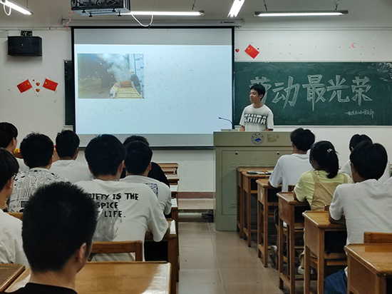 为贯彻落实习近平总书记有关劳动教育的重要指示,教育引导学生崇尚劳动、热爱劳动、投身劳动、尊重劳动,推动leyu乐鱼官网学子形成尊重劳动、劳动光荣的良好风尚。leyu乐鱼官网于5月31日晚在竞知楼各班教室开展"劳动最光荣"主题团日活动。