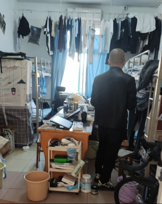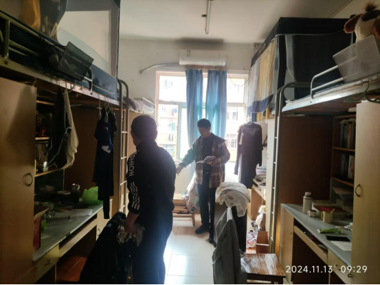 检查中,学生科认真组织,以辅导员负责年级为主,分组落实,切实排查宿舍违章用电、吸烟明火、管制刀具、易燃易爆物品等安全隐患及人走不断电不锁门等现象,同时内务卫生和宿舍文化建设。对于存在安全隐患、内务脏乱的寝室及时通报并强制督促限制整改。