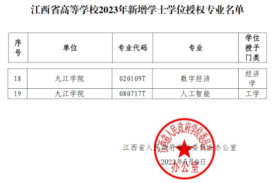 2023年5月9日,江西省人民政府学位委员办公室公布赣学位办[2023]6号文件,根据国务院学位委员会、教育部《学士学位授权与授予管理办法》和《江西省学士学位授权审核实施细则》精神,江西省学位办组织了2023年江西省高等学校新增学士学位授权专业审核工作,经过省学位办统一专家审核,leyu乐鱼官方网站人工智能专业学士学位授权获批通过。