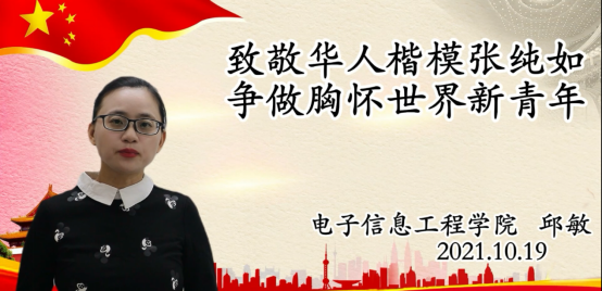 leyu乐鱼官网邱敏老师参赛作品是以“致敬华人楷模张纯如,争做胸怀世界新青年”为主题,通过对张纯如女士的事迹的深情讲述,将张纯如女士高大的形象立体地呈现给观众,并号召新时代的中国青年要像张纯如女士学习,既有家国情怀,又能胸怀天下,为人类社会的发展充分展示泱泱大国青年的气度与格局,责任与担当。本次教师组共有50余名参赛者,邱敏老师凭借着努力和实力最终脱颖而出,取得第一名的好成绩。