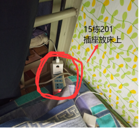 一、插座放置于床铺,易引起火情。