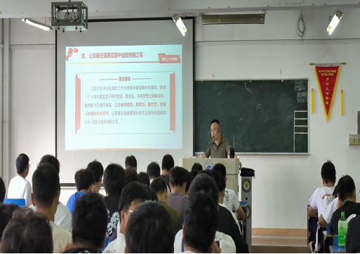 在竞知楼806,邓院长以《让青春在强国建设民族复兴实践中绽放绚丽之花——深入学习贯彻党的二十大精神》为题,为A2361、62班同学们讲授了中国式现代化的重大意义、中国式现代化的中国特色和本质要求,以推动高质量发展谱写中国式现代化新篇章这个首要任务、青年大学生在强国建设民族复兴新征程上的使命担当四个方面的内容。