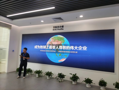 23日上午,首先乘车参观了京东方合肥B9工厂。在B9工厂展厅,工作人员详细介绍了京东方各个时期生产的显示屏产品,重点介绍了该厂最先进的第10代显示屏生产线。介绍完毕后,参观了京东方大型自动化生产车间,听取了京东方的历史和文化讲座。