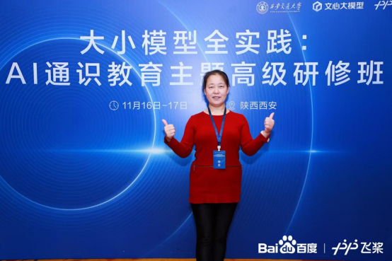 为加快人工智能、大模型等新技术与高校 AI 通识教育深度融合,提升高等院校人工智能通识课教师的实践能力,由教育部高等学校大学计算机课程教指委指导,教育部大学计算机课程改革虚拟教研室主办,西安交通大学和百度公司承办的“大小模型全实践:AI 通识教育主题高级研修班”于 2024年11月16-17 日在西安建国饭店举办,此次培训采用线下课程的形式进行,leyu乐鱼官网人工智能教研室李晓妮老师参加了相关研修学习。