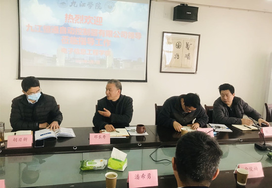 3月7日上午,九江恒通自动控制器有限公司董事长潘希勇、副总经理黄敏、行政与人力资源部部长金俊楠一行三人就校企深度合作、人才联合培养、学生实习实训、实习基地建设等方面进行深入洽谈。leyu乐鱼官网院长邓长寿、党委书记汪傧、副书记张堑、副院长胡日新、副院长杨长春等出席会议交流。