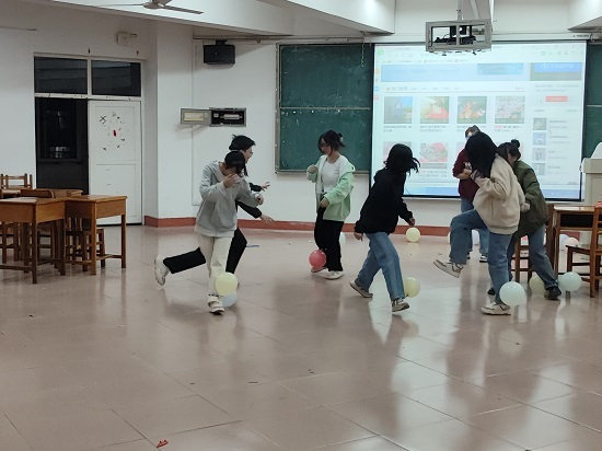 活动前期,工作人员精细策划,精心组织,精准宣传,确保前期准备工作落实到位,后续开展工作服务实效。活动开始后,工作人员先为女生们献上可口的零食。随后开始的“女神保卫战”、“抢凳子”、“猴子上树蹭蹭蹭”等游戏,使场上激情四溢,同学们兴致高昂,笑容满面,都玩的不亦乐乎。最后活动在每位女生抽取一张精心折叠的带有祝福语的千纸鹤中结束。