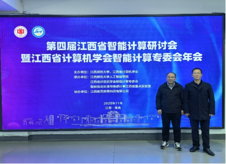 11月29日,第四届江西省智能计算研讨会暨江西省计算机学会智能计算专委会年会在江西师范大学青山湖校区双理楼二楼报告厅举行,共有10余高校、100多位代表参加了会议。本次研讨会聘请了智能优化调度、分布式群智能优化等方面专家作了专题报告,并就智能计算的其他方面作了深入交流,有力促进了我省在智能计算领域的高质量发展。
