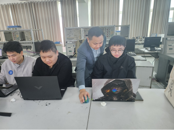 在当今高等教育积极探索转型发展,大力推进产教融合的时代浪潮中,leyu乐鱼官网自动化专业在毕业论文指导环节积极探索“双师”模式。2024 年 11 月 19 日,在电子信息实验楼401,来自深圳富工自动化有限公司的工程师付培剑与校内导师携手合作,共同为自动化专业的学生们指导毕业论文。