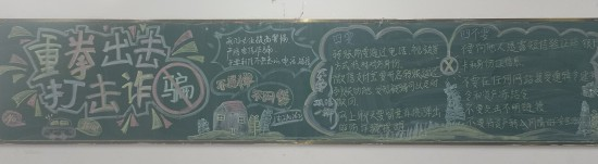 同时,为营造浓厚的校园文化氛围,呈现文明校园新气象,充分发挥黑板报阵地育人作用,学院团委组织各班团支部紧紧围绕“防诈骗”主题,广泛搜集资料,精心设计版面,编排出了一系列主题鲜明、内容丰富、图文并茂的黑板报。