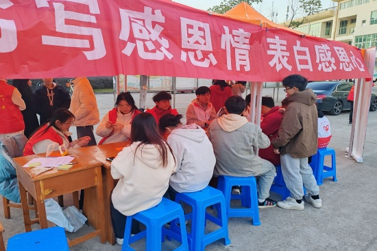 活动当天,志愿者们提前到达现场,用心布置起一个个充满温馨氛围的书写区域。感恩主题的海报随处可见,为现场增添了一抹深情的色彩。精心准备的桌椅上,摆放着精美的卡片、五彩斑斓的笔和便签纸,等待着同学们前来倾诉心中的感恩之情。