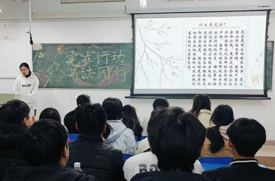 在班会期间,团支书为同学们深入讲解了宪法的概念、性质、特征以及我国宪法的发展历程,帮助同学们构建起全面的宪法知识体系。通过这种深入浅出的讲解,同学们对宪法有了更深刻的认识和理解。随后,通过诵读宪法条文、研讨宪法案例等多种形式,极大地激发了学生的学习热情,并有效加深了他们对宪法内容的理解。这些活动不仅让宪法知识变得生动有趣,也让学生在实践中体会到宪法的重要性。