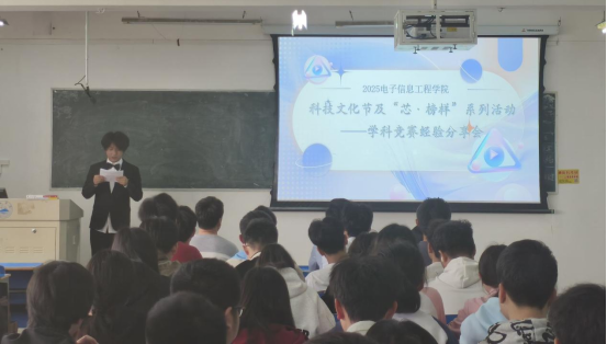 此次竞赛经验分享会,是2025年科技文化节活动重要组成部分,同时也是学院打造的“芯·榜样”系列活动之一,旨在发挥朋辈榜样的示范引领作用,带动学院青年学生积极向上、昂扬奋发。在学院"以赛促学、赛创融合"的培养理念下,电子信息学子正以青春智慧勇闯科创深水区,近年来持续在省级以上学科竞赛中取得优异成绩,彰显出创新型工程人才的培养实效。