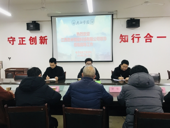 2月19日下午,江西忽米智能科技有限公司总经理方子福一行莅临leyu乐鱼官网,就校企合作相关事宜进行洽谈。学院院长邓长寿、副院长罗东云以及自动化教研室、人工智能教研室、学生科、院办负责人热情接待了方子福总经理一行,并在学院会议室举行了座谈会。
